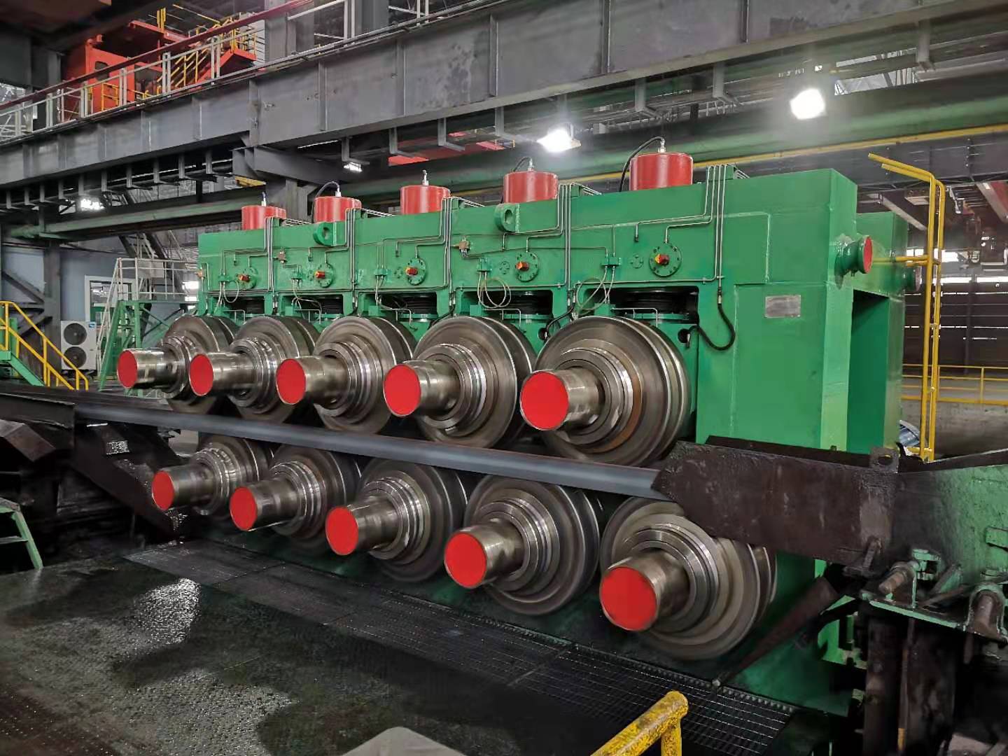連鑄—連軋短流程生產(chǎn)線具有世界先進(jìn)水平,主要裝備有: 雙蓄熱步進(jìn)式加熱爐、1000兩輥開坯軋機(jī)、十一架高剛度短應(yīng)力線連軋機(jī)、155m步進(jìn)式冷床、900十輥矯直機(jī)、1100十輥矯直機(jī)、移動(dòng)式冷鋸、型鋼自動(dòng)包裝機(jī)等,采用了熱裝熱送、高壓水除鱗、控制軋制、控制冷卻、長尺矯直、冷鋸定尺、自動(dòng)包裝、微機(jī)自動(dòng)化控制等世界領(lǐng)先的工藝和技術(shù)。