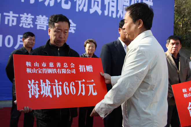 10月16日,公司總經(jīng)理張鐵漢出席市慈善總會(huì)“敬老月”活動(dòng)。繼2009年公司捐資300萬元為全市72所敬老院購置家電、廚具等,今年公司再次捐資200萬元,為全市72所敬老院,共3600多名孤寡老人添置新衣、被褥,讓這些頤養(yǎng)天年的老人感受到社會(huì)主義大家族的溫暖。(圖為“敬老月”活動(dòng)現(xiàn)場)