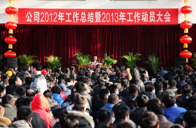 2月16日農(nóng)歷初七,是春節(jié)后第一個(gè)工作日,公司1500名員工(不包括在崗員工)歡聚一堂,在網(wǎng)球場(chǎng)召開每年一度的全體職工大會(huì)。