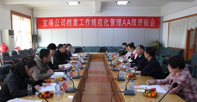 1月31日,由遼寧省檔案局業(yè)務(wù)指導(dǎo)處歐平處長、副處長葛仁軍、科員于佳,市檔案局趙壽安副局長、王一鳴處長、楊琳副處長組成的評估組,到公司進行檔案工作規(guī)范化管理“AA”級評估,經(jīng)過認真細致的檢查,一致通過了公司檔案工作規(guī)范化管理“AA”級評估。